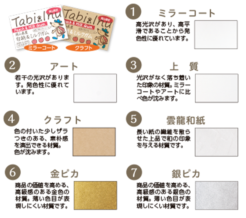●選べるシールの材質には耐水性はありません。冷蔵保存が必要なパッケージ等には向いていません。